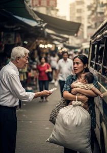 Sa masikip na terminal, yakap ni Mylene ang anak habang naghihintay ng biyahe pauwi sa probinsya. Ramdam niya ang bigat ng bag pati na rin ng lahat ng emosyon at pagod sa loob ng ilang buwan na paglalayo sa pamilya. Walang imik si Mylene habang pinagmamasdan ang ingay ng paligid at nag-aalala kung sapat ang perang uuwi sa kanila.
