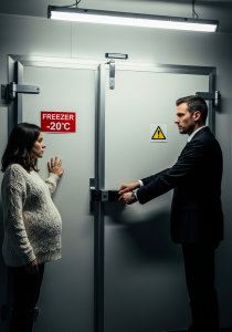 When we arrived, he helped me inside the cold room under the pretext of checking inventory. The piercing −20°C air hit me, making me shiver uncontrollably. Before I could react, he pushed me in and slammed the door with a chilling click.