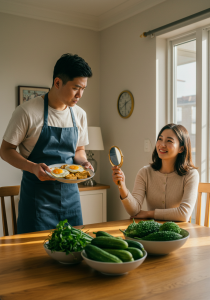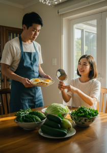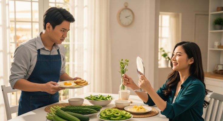 Sa hapunan, pinilit ni Marco na maging magaan ang usapan, inilabas niya ang mga naiimbak nilang gulay, itlog, at tofu mula sa ref upang makapaghain pa rin ng masarap na pagkain. Nasa larawan ang masaganang hapag kainan — isang paalala na kahit na may tindi ang suliranin, patuloy ang pamilya sa pagharap ng hamon.